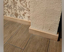 МДФ плинтус от компании "Лука". Перекроет зазор между стеной и полом до 16 мм.